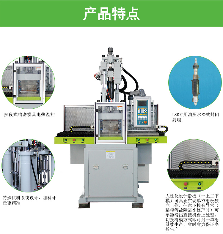 85噸立式(shì)液態(tài)矽膠(jiāo)射出成型機的產品特(tè)點: